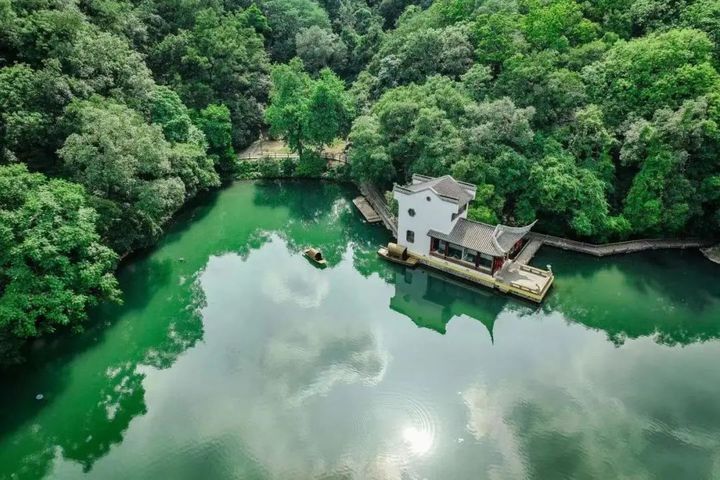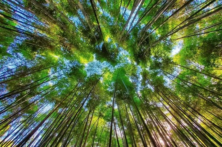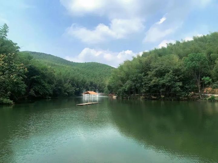 微风拂得竹叶沙沙作响,一汪清水倒映着大片苍翠。漫步于青青翠竹之下,舒适感油然而生,置身其中连呼吸中都盈满绿意。