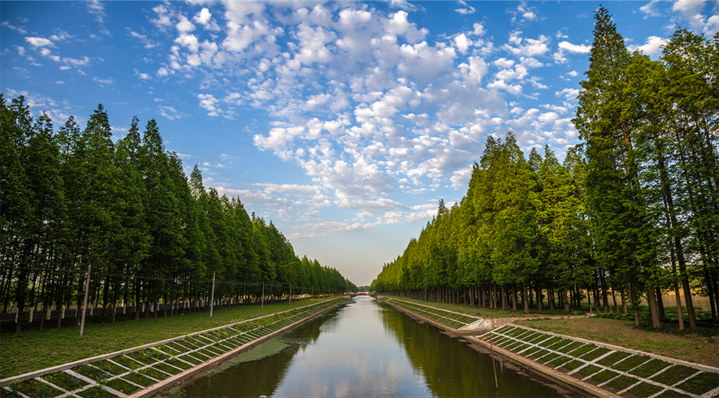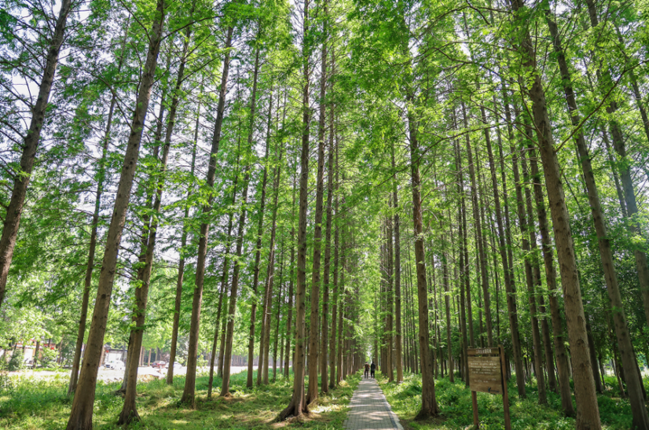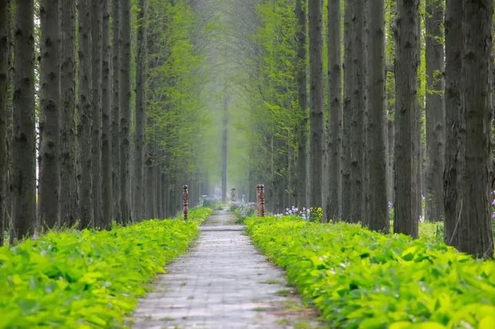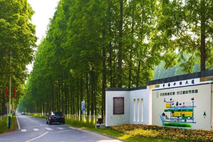 徜徉水杉大道,犹入绿色隧道,沿途绿荫遮蔽,草木清香。