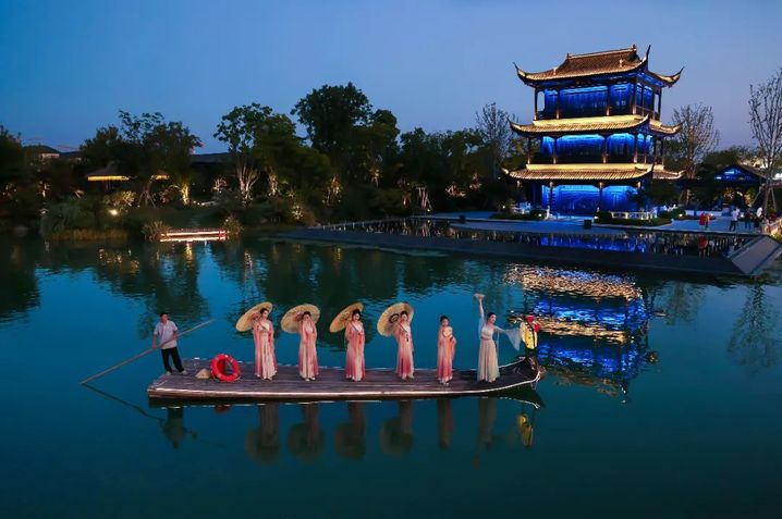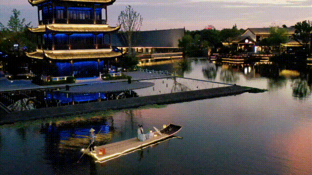 桨声灯影里,小镇夜阑珊。固城湾的烟雨竹筏将水韵、自然、灯光、音乐、环境融为一体,打造如梦似幻的"沉浸式"夜游路线。