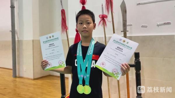 今年10岁的姜智棋,5岁就开始了自己的武术生涯。本次比赛中,姜智棋以第一名超高分成绩获得男子A组少林拳比赛冠军,将本届锦标赛首枚金牌收入囊中,成功为江苏队夺得首金,实现开门红。在之后的比赛中,姜智棋又拿下枪术比赛最高分,成为双料冠军。