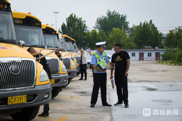 假期即将结束,各中小学、幼儿园迎来开学季。为确保校车运行安全,给学生创造一个良好的交通环境,睢宁交警大队针对校车开展安全检查。