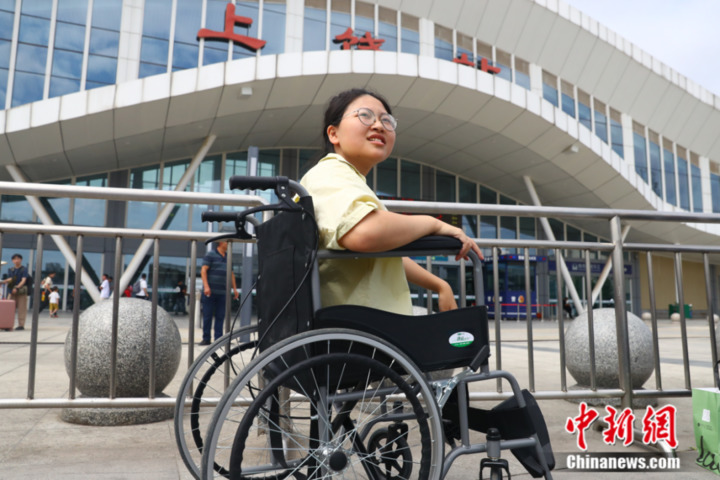 图为8月31日下午,蒋张子怡准备从江西上饶站出发。中新社记者 刘占昆 摄