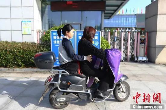 图为2021年,蒋张子怡的母亲每天骑着电动车接送她上学。(资料图) 中新社记者 刘占昆 摄