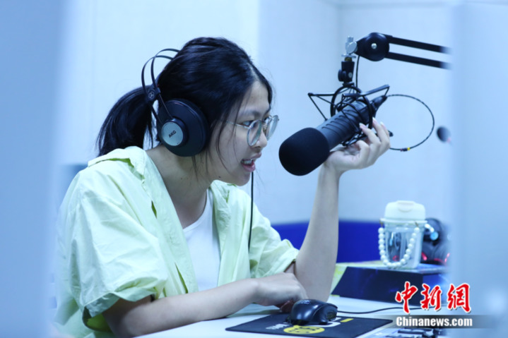 图为2023年暑假,蒋张子怡在江西上饶市广播电视台实习播音。中新社记者 刘占昆 摄
