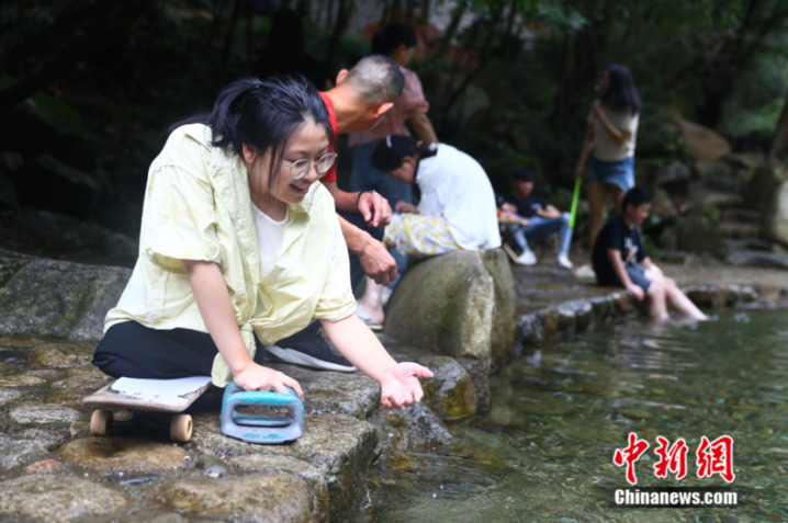 图为2023年暑假,蒋张子怡在江西婺源大鄣山卧龙谷亲近自然。中新社记者 刘占昆 摄