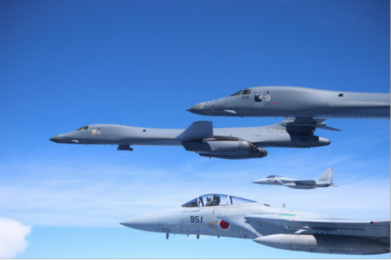 《欧亚时报》称,8月30日,美国分别部署B-1B轰炸机与韩国、日本举行联合演习,在与韩国空军演习中,美军B-1B轰炸机飞临朝鲜半岛上空,美军还出动F-16战机与韩国空军FA-50战机一同为轰炸机护航。韩国国防部声称,此举是所谓“延伸威慑”的示范,以应对朝鲜发射航天器并展示“统一和强大的防御姿态”。