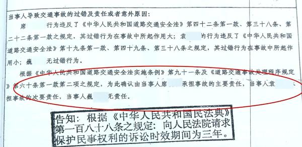 经交警部门认定,席某承担事故的主要责任,袁某承担事故的次要责任,巍女士无责任,经鉴定,巍女士构成九级伤残,定残时71周岁。