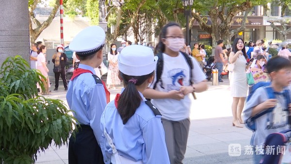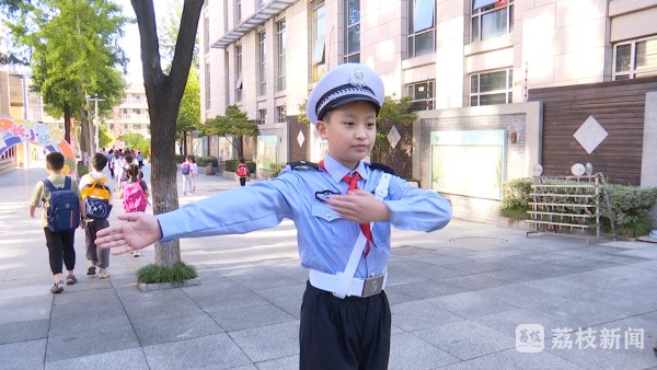 早上8点,在南京长江路小学门口,两名小交警穿戴整齐、正式上岗。南京长江路小学四年级学生陈浩坤一边演示一边告诉记者,通过暑期的集中培训:“那些(指挥交通的)手势我都学会了!”而南京长江路小学四年级学生杜雨庭告诉记者:“我学了一些禁毒的 、(防范)诈骗还有交通(安全)的基本知识。”