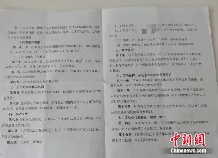 李月告诉中新网,她是在医院实行招聘制后进入,刚开始签订的劳动合同期限是三年。2017年开始,医院与她重新签订聘用工作人员劳动合同书,合同期限为一年,此后劳动合同便都开始一年一签,直到去年解除劳动关系。