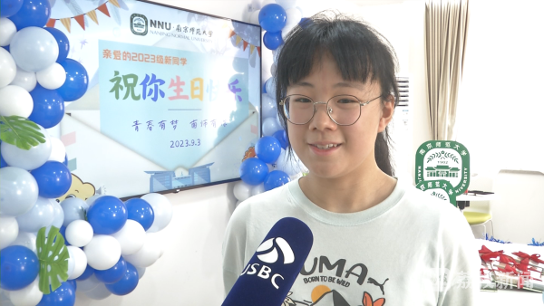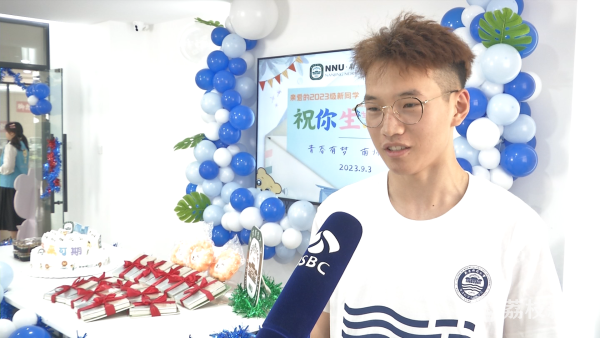 一同过生日的南京师范大学2023级本科新生彭若涵说:“我9月3号生日撞上开学报到,所以我生日提前一天在9月2号过了,没想到今天学校给我准备了一个惊喜,我还是蛮开心的。学校给我们准备这样的一个生日派对,还有热情的学长来帮忙,能感觉到整个学校的活力还有热情。”