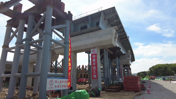 市建管中心道桥工程部312国道新吴段项目现场负责人表示:为了保证钢箱梁顶推施工安全顺利开展,市建管中心组织牵头,项目部积极与相关单位多次召开技术、安全、交通协调会。针对节点目标细化每日工作,优化钢箱梁顶推施工方案。