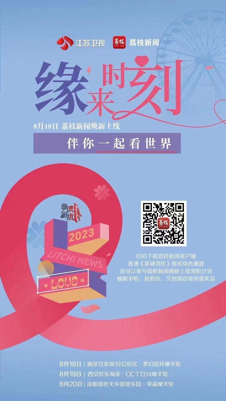 8月18日,江苏广电旗下应用荔枝新闻正式焕新上线。自2013年8月推出以来,“伴你一起看世界”的浪漫,一直是荔枝新闻的长情坚守。又逢七夕临近,8月18日-20日,荔枝新闻与《非诚勿扰》携手,从南京出发,又先后来到西安与成都,在三城接力举办“缘来时刻——伴你一起看世界”系列活动,传递着缘分的浪漫与爱情的甜蜜。