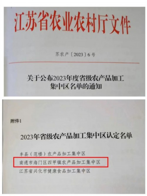 中国江苏网9月5日南通讯 近日,省农业农村厅公布2023年度省级农产品加工集中区名单,新认定3家省级农产品加工集中区,南通市海门区四甲镇农产品加工集中区名列其中。据悉,这是继临江新区农产品加工集中区后,海门被认定的第二个省级农产品加工集中区。