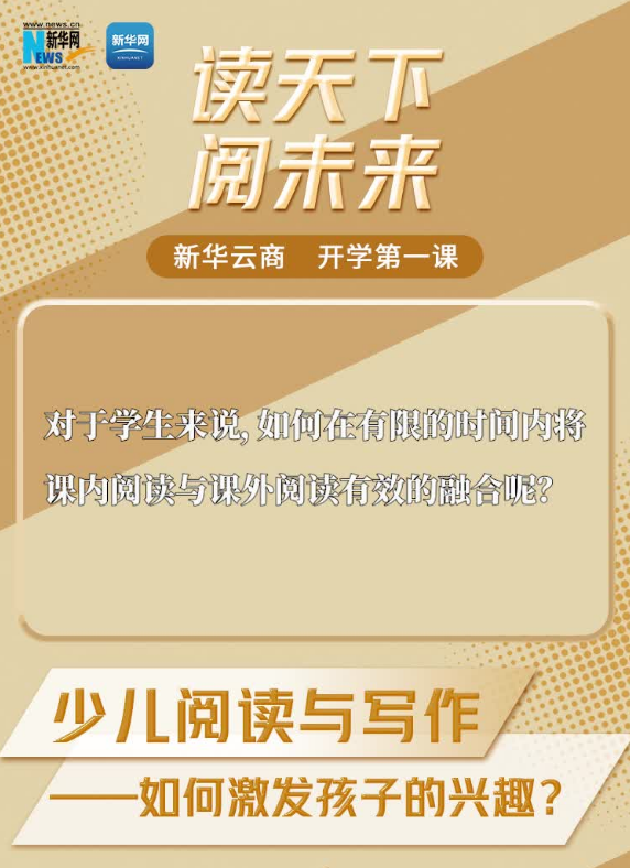 读天下,阅未来。开学之际,针对家长和学生们所关注的一系列问题,新华网特邀多位不同领域的专家为大家答疑解惑,带来更专业的视角和声音。如何将课内阅读与课外阅读有效融合?如何为不同成长阶段的孩子推荐适合的图书?孩子们在生活中应如何积累写作素材?儿童文学博士、人民教育出版社编审王林为家长们在线支招。