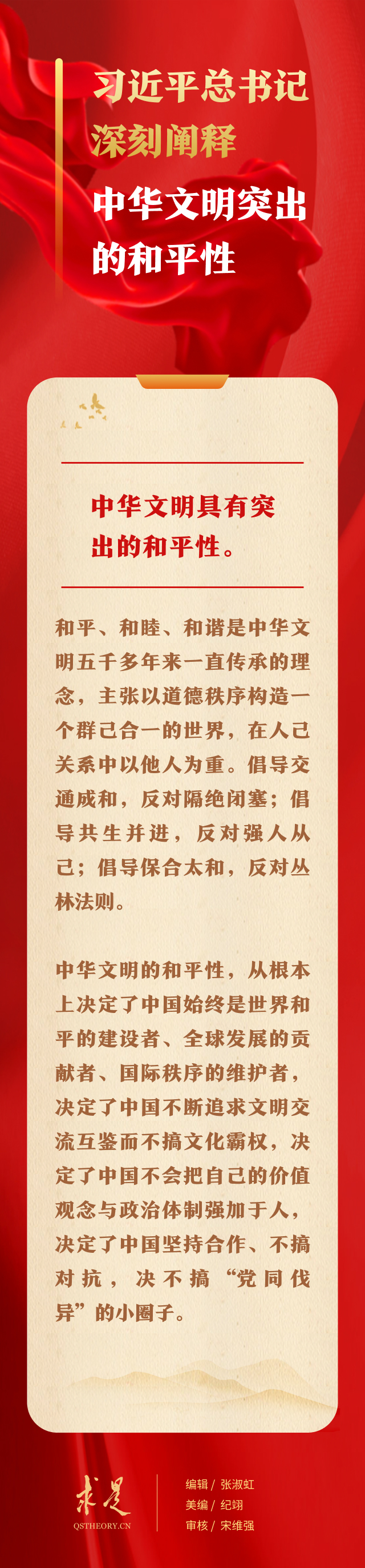 9月1日出版的第17期《求是》杂志刊发习近平总书记重要文章《在文化传承发展座谈会上的讲话》。在这篇重要文章中,总书记从中华文明具有突出的连续性、突出的创新性、突出的统一性、突出的包容性、突出的和平性5个方面,对中华文明的突出特性作出深刻阐释。