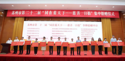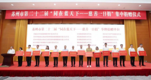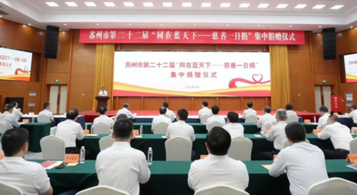 9月4日,苏州市举行第二十二届“同在蓝天下——慈善一日捐”集中捐赠仪式。市委书记曹路宝,市委副书记、市长吴庆文,市人大常委会主任李亚平,市政协主席朱民,市委副书记黄爱军等市领导带头捐赠。