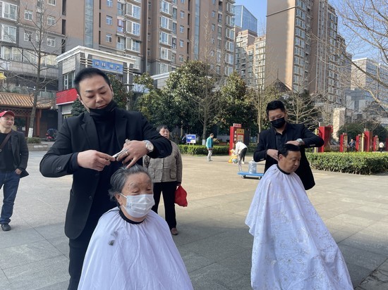 理发店为居民提供义剪服务。金元社区党总支供图