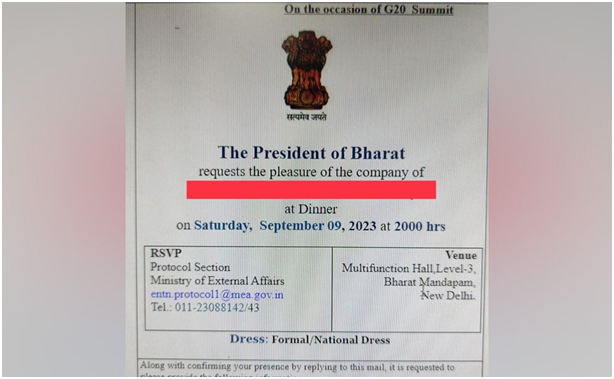 将印度总统称为“婆罗多总统”的邀请函 图源:印度新德里电视台网站