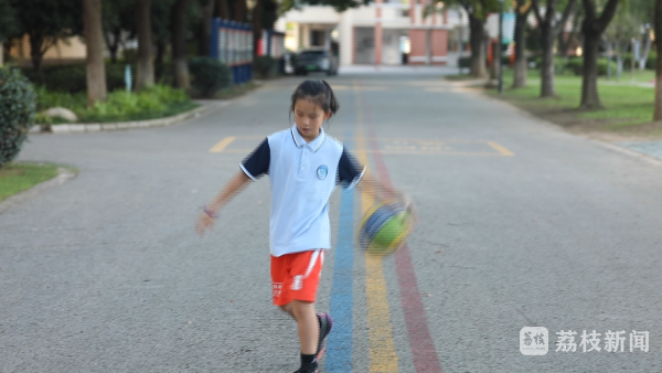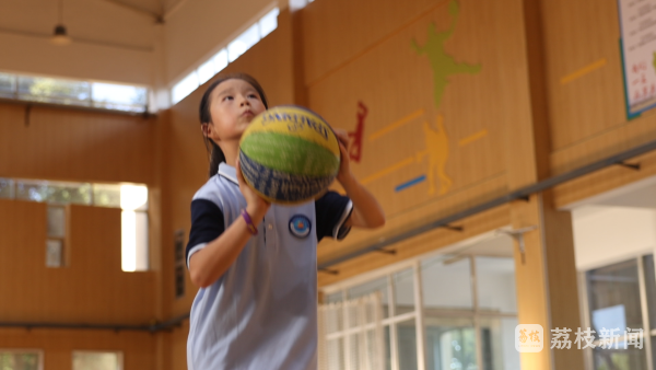 江苏苏州张家港市暨阳湖实验学校学生许曦月说:“是我们学校的灌篮高手,虽然说她个子矮矮的,但是她的实力很强悍。”