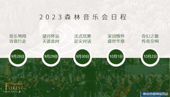 森林交响,如约而至。2023南京森林音乐会将于9月28日至10月2日每晚7点半在中山陵音乐台上演。海内外名家名团齐聚,为广大市民、乐迷献上一场精彩纷呈的视听盛宴。本届南京森林音乐会由江苏省委宣传部、南京市人民政府主办,南京市委宣传部、中山陵园管理局、南京市文旅局承办,南京广电集团执行。