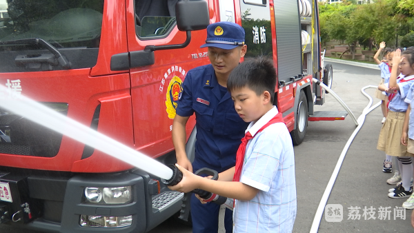 新学期刚刚开始,今天(9月12日)上午,南京的消防员就开着消防车走进了雨花外国语小学,现场教学使用灭火器、体验水枪出水.....给小学生们上了一堂生动的消防安全课。