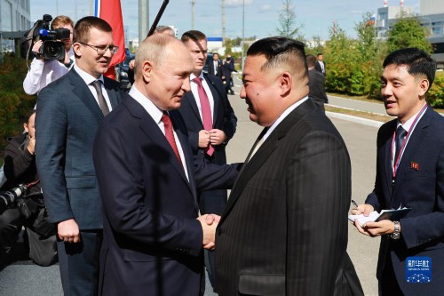 据俄新社13日报道,普京当天在东方航天发射场为金正恩举行迎接仪式,并进行简短交谈。两国元首在东方航天发射场视察“安加拉”火箭发射台建设进程和“联盟-2”号火箭的发射装置。报道称,普京在回答记者关于“俄罗斯是否会帮助朝鲜制造人造卫星”的问题时回答说,“这就是我们为什么来到了东方发射场,朝鲜领导人对火箭设备很感兴趣,朝鲜也正在尝试发展太空技术”。此外,普京在回答“是否会与朝鲜领导人讨论军事技术合作”的问题时表示,将与朝鲜领导人“循序讨论所有的问题,时间有的是”。现场视频显示,参观期间,金正恩不时向俄方讲解人员提出问题。俄新社称,金正恩“对运载火箭的运行原理、燃料特性、坠落物问题等都特别感兴趣”。