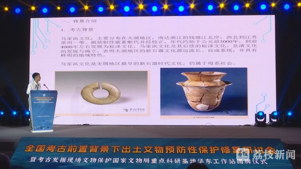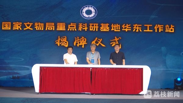 活动现场,关于考古发掘现场文物保护方面的“国家文物局重点科研基地华东工作站”正式揭牌成立。无锡市文物考古研究所所长刘宝山介绍,工作站将围绕文物预防性保护和抢救性保护研究、人才队伍建设、科研成果转化应用、深化国内外科技合作与学术交流等方面开展相关工作。