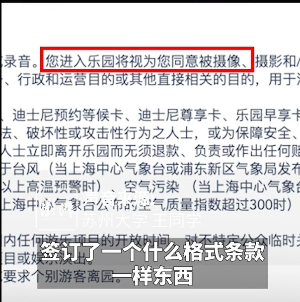 而对于迪士尼所说的“条款须知”,律师认为,“存在变相强制游客同意的情况”,这些入园规定和《民法典》等有冲突,此外并没有说清楚这些照片的用途,有可能存在超出合法、正当必要性的范围。