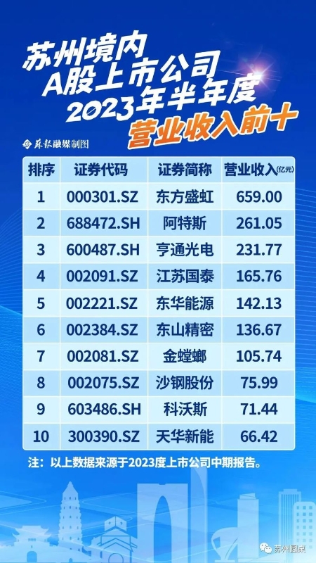 苏州上市公司半年报披露完毕:2023年上半年,A股“苏州板块”共实现营业收入超3900亿元,净利润逾265亿元。其中,过半公司净利润实现了增长。