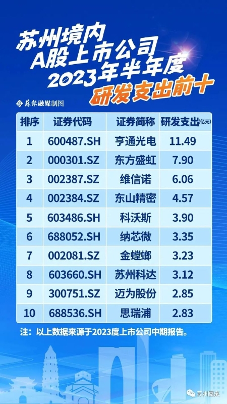 从统计数据上看,苏州的上市企业都已毫不犹豫地迈上了高质量发展的征途——2023年上半年,所有苏州上市公司的研发投入总额达144.54亿元,创历史同期新高;研发投入占总营业收入比为3.69%,远高于同期A股整体研发投入力度的1.95%。