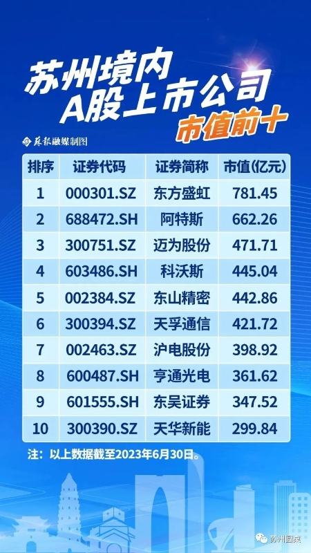 上市公司多——2023年,苏州新增境内外上市公司18家,总数达258家。其中,境内A股上市公司为214家,位列全国第五;科创板53家,居全国第三。截至8月底,苏州企业年内通过资本市场共募集资金842亿元。
