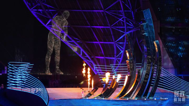 △“数字火炬手”入场,与现场火炬手共同点燃主火炬。(总台央视记者王子杭、总台国广记者李晋拍摄)