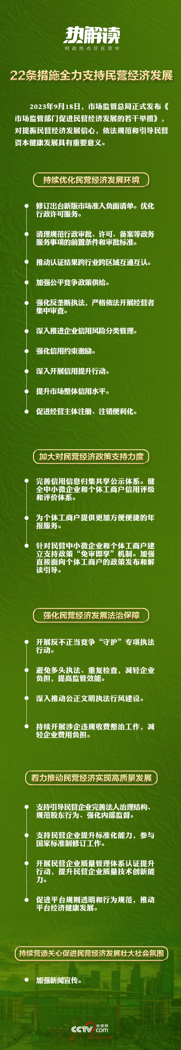2023年7月14日,中共中央国务院出台《关于促进民营经济发展壮大的意见》,对促进民营经济发展壮大作出新的重大部署。2023年9月18日,市场监管总局发布《市场监管部门促进民营经济发展的若干举措》,通过22条措施为全力支持民营经济发展设计了具体落实的“施工图”。