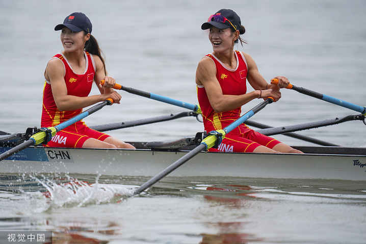 9月23日,杭州亚运会赛艇女子轻量级双人双桨,邹佳琪/邱秀萍夺金。