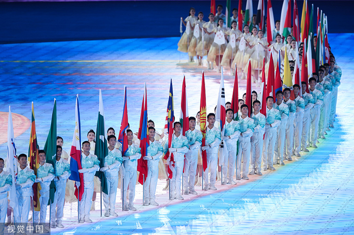 当饱受战争蹂躏的阿富汗和叙利亚等国运动员23日晚走进亚运会开幕式主体育场时,全场观众给予热烈掌声。而由超过1亿人参与数字火炬传递而汇聚成的“数字人火炬手”高擎火炬,从钱塘江踏着浪花跑到主体育场“大莲花”上空与火炬手汪顺一同点燃主火炬时,这次超炫的亚运会更是惊艳了世界。