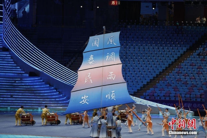 开幕式前的暖场演出。中新社记者 杜洋 摄