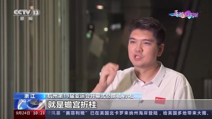 杭州第19届亚运会开幕式总撰稿 冷凇:首先桂花是杭州市花,整个杭州人浙江人,他对桂花都是有感情的。第二个桂花本身在9月在秋季就是丹桂飘香的氛围,所以其实在杭州大街小巷,只要到了秋天都能闻到桂花的香味,丹桂飘香也是一种美好的寓意。第三个,还有一个寓意就是美好蟾宫折桂,寓意着我们鼓励所有的运动员勇攀高峰,勇得桂冠。