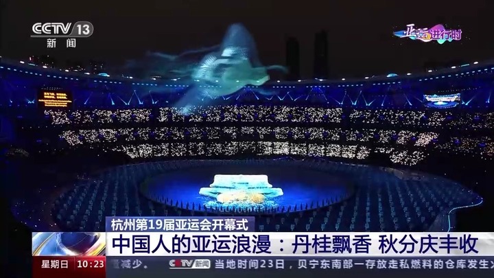杭州亚运会开幕正值中国二十四节气的秋分,在这个丹桂飘香,喜迎丰收的时节,杭州亚运会开幕式以中国人独有的浪漫元素喜迎四方宾朋。点击此处查看视频