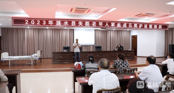 近日,涟水县近百名失能老人家庭成员,接受专业护理老师集中培训。系统了解如何为失能老人更换护理垫,为带鼻饲老人进食等内容。市民胡启利:“像我家公公婆婆生病的时候都非常严重,但是今天学习的这些技能我都不会。今天学完以后,那以后肯定就是上手的话轻松多了。”