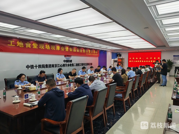 9月26日下午,在南京建邺区江心洲的中铁十四局大盾构公司南京江心洲污水收集系统二通道建设工程项目部,建邺区市场监管部门执法人员对工地食堂进行了突击检查,并组织辖区内34家项目工地食堂负责人进行现场观摩。