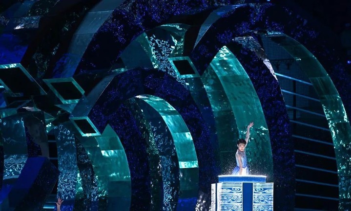 开幕式上,实证中华五千年文明史的良渚文化多次亮相。在迎宾表演《水润秋辉》中,演员们所击之鼓以良渚玉琮为原型,传递来自远古的呼唤,以良渚之光交映秋分之辉。在短片《相约杭州》中,“良渚少女”与现代少年跨越时空同频共振,展现出“爱达未来”的古今相融瞬间。