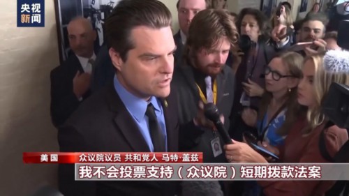 众议院议员 共和党人 马特·盖兹:我不会投票支持(众议院)短期拨款法案。