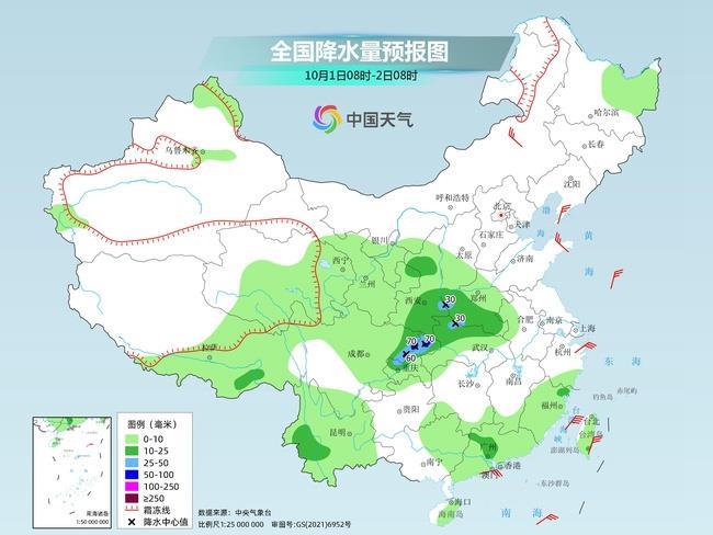 今天(10月1日)是一年一度的国庆节,也是中秋国庆假期的第三天,随着副热带高压再度北抬,四川盆地东北部至湖北西北部一带的降水将再度增强,陕西南部、四川东部等地局部或现暴雨。而由于冷空气进入短暂间歇期,未来两天,我国北方地区则以秋高气爽的天气为主,昼夜温差较大,夜间气温低,部分地区的气温或将创立秋以来新低。