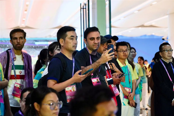 “我的心中有一座湖,远山近水入画图,桃红柳绿春来早……”一曲婉转悠扬的《人间西湖》,唱出了江南水乡的柔美意蕴。热情欢快的舞蹈《等你来》,展现出了赛会志愿者“小青荷”的无限青春活力。别致典雅的汉服秀《宋韵红墙》,传递着中国传统文化之美。精彩纷呈的节目,一次次将观众的热情点燃,很多在场的记者也纷纷拿起手机,拍摄下了一个个精彩的画面。