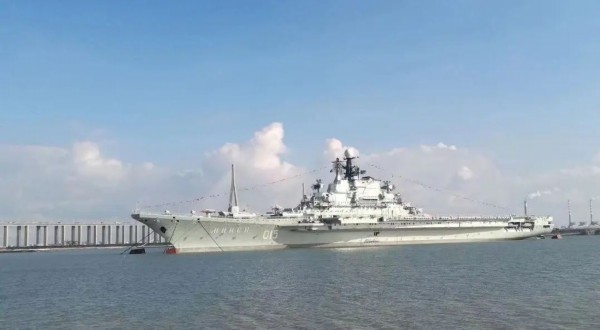 接着沿着苏锡通沿江景观带步道观看大型航母。
