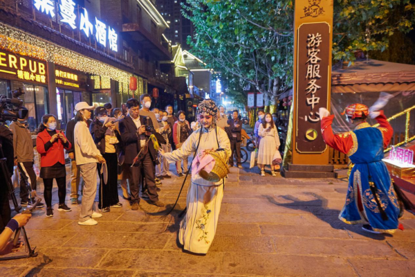 晚上漫步在盐河巷,这里涵盖吃、喝、玩、乐、逛五大主题,有大嘴巴鱿鱼、毛孩海鲜烧烤、海大叔等当地热门美食小吃,晚上还有水韵国潮夜演活动。