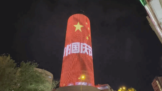 位于伊拉克首都巴格达的地标性建筑巴格达商城近日也点亮了“中国红”,庆祝中国国庆节。