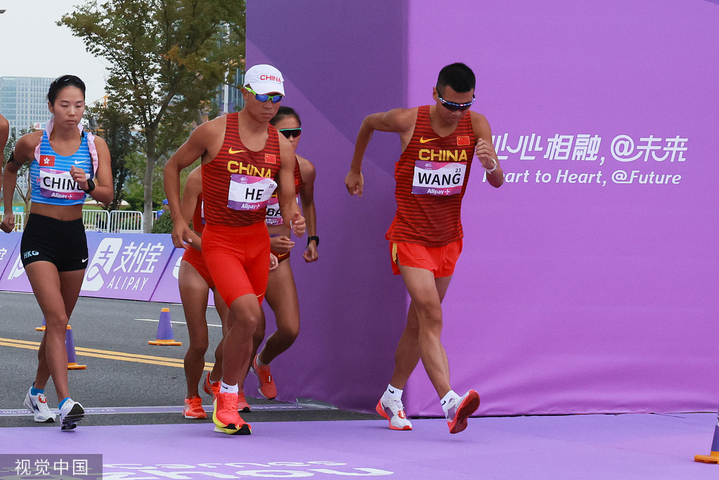 10月4日上午,杭州亚运会混合35公里竞走比赛在智慧新天地沿江观景带展开,由切阳什姐、白雪莹、王钦和贺相红组成的中国队夺得冠军!
