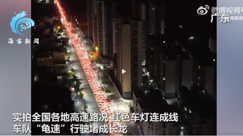 也有有网友晒出高速路况画面,车队“龟速”行驶堵成长龙,并表示“特意提前三天回去。