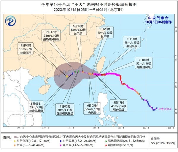 今晨05时,台风“小犬”的中心位于我国台湾省鹅銮鼻以东大约25公里的近海海面上,预计它将以每小时10-15公里的速度向偏西方向移动,即将于今天早晨登陆或擦过台湾岛东南部沿海,以后向西偏北方向移动,趋向广东东部近海,强度逐渐减弱。